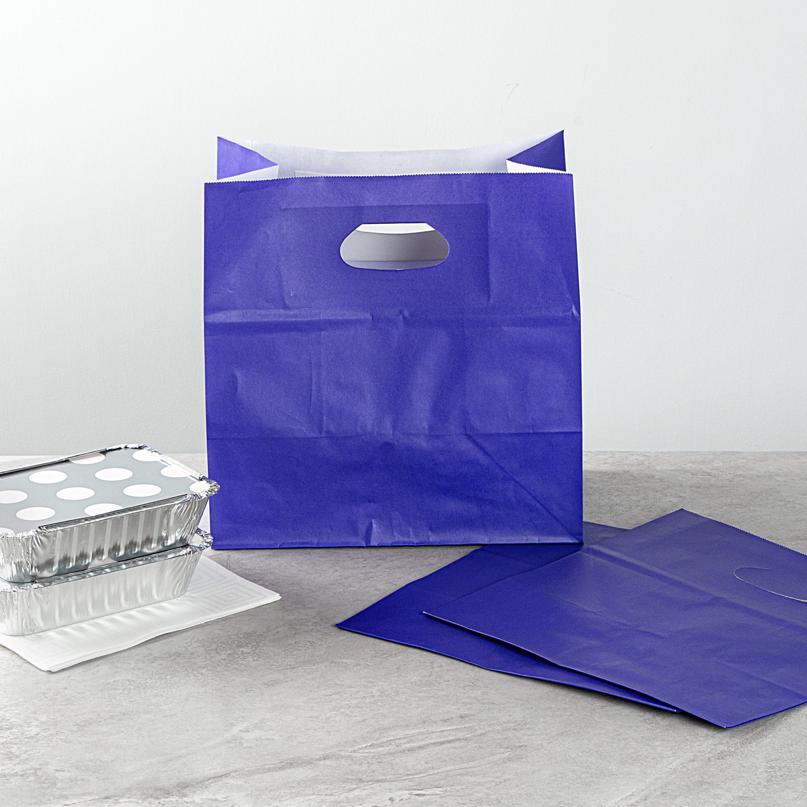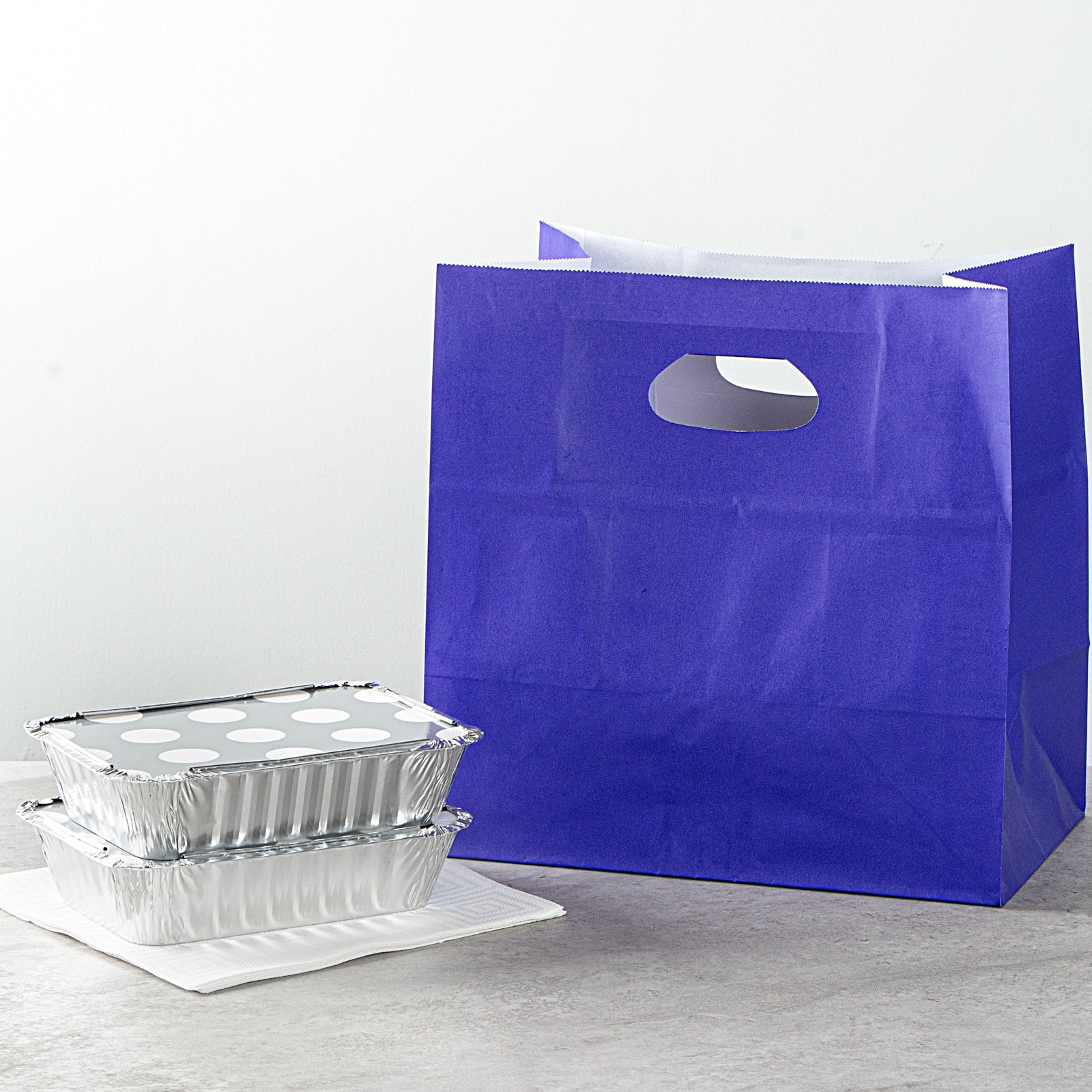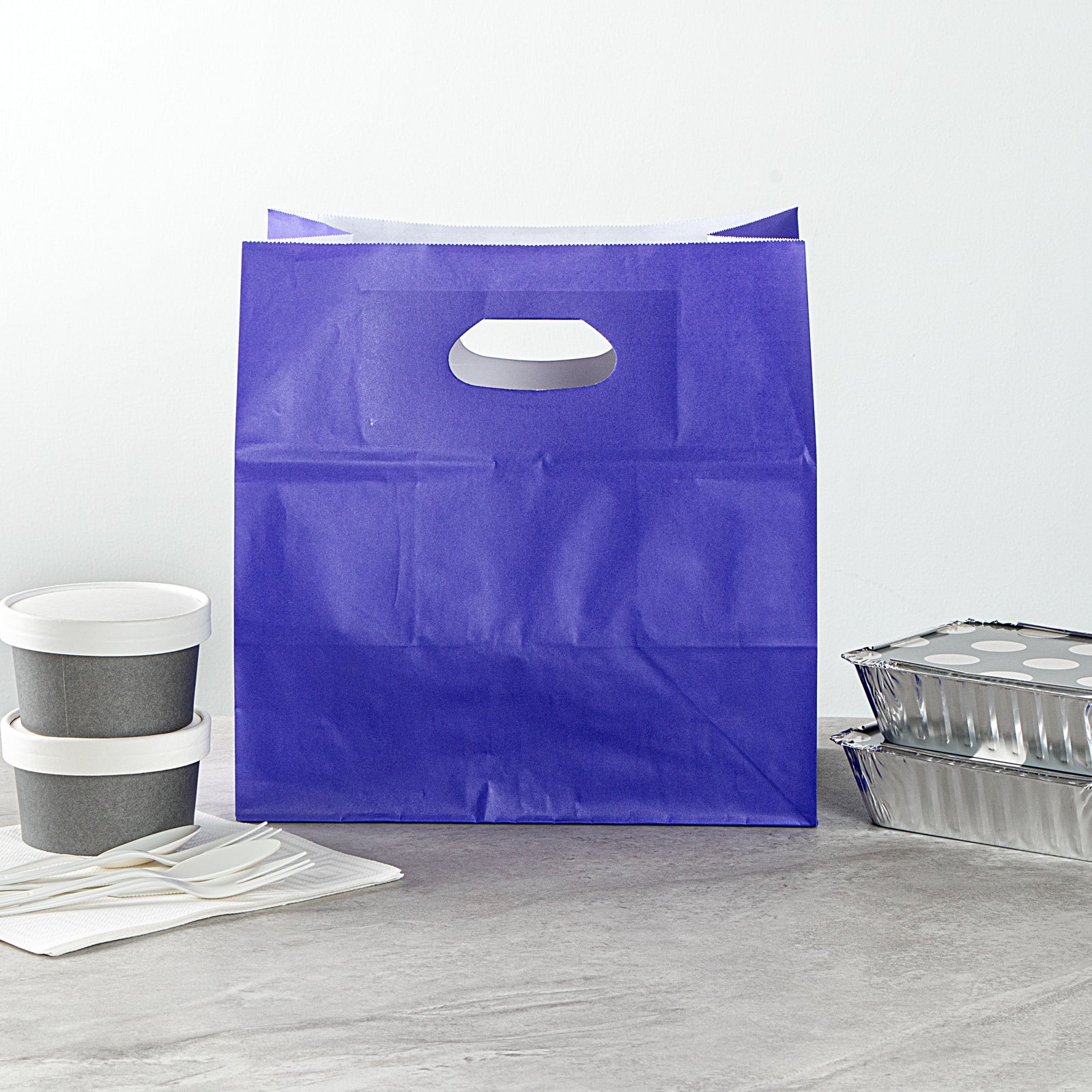 RECTANGLE PURPLE PAPER TAKE OUT BAG - WITH HANDLES