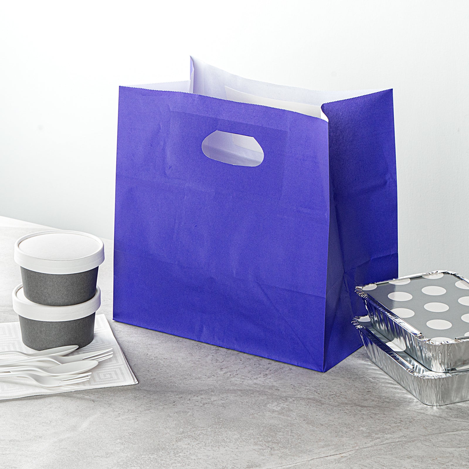 - Cut-out handles enable comfortable carrying of several food items for delivery