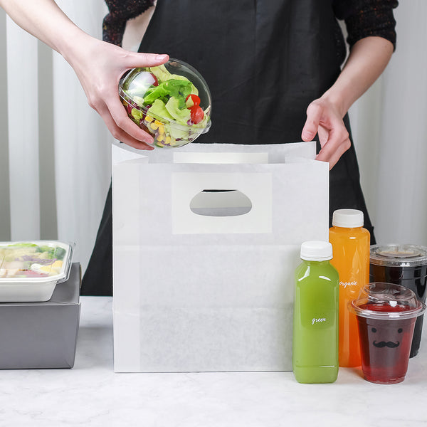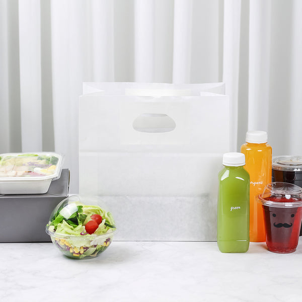 With cut-out handles, these take out bags allow you to easily carry your grocery store purchases or transport customers’ delivery orders! These cut-out handles are naturally durable to prevent them from ripping or tearing.