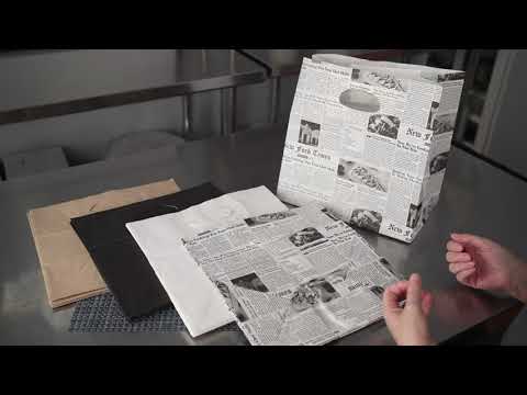 Available in a white, black, kraft, and newsprint finish, these to go bags provide you with a unique and stylish way to package products. Excellent for packaging food orders at restaurants or giving gifts during the holidays!