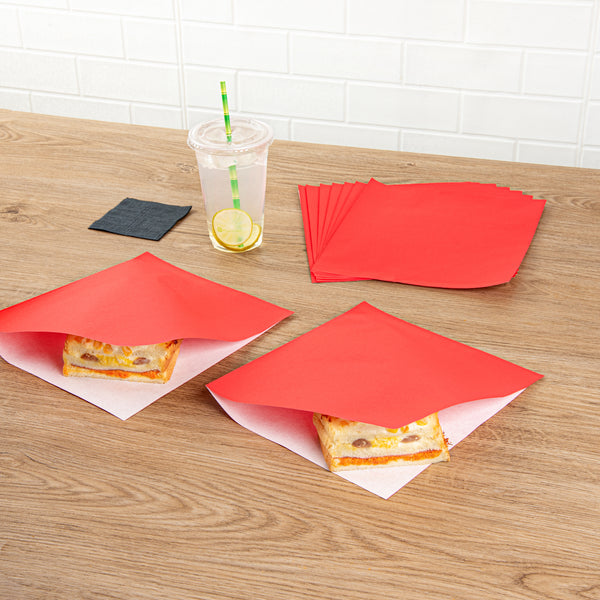 Share your snacks in Bag Tek Red Paper Large Double Open Bags. Crafted from premium paper, these deli wrap liners are a dual-open design perfect for quick snacks or for serving as cone basket liners. The vibrant red finish of these double-open bags elevates the visual appeal of your food presentation. Designed with greaseproof PE lining, these sandwich wrappers resist oil or grease from seeping through and creating a mess for an elevated eating experience. These paper snack wraps can be used in the microwave for up to 2 minutes making reheating meals a breeze. To align with eco-friendly practices, these microwave-safe food bags are recyclable. Each deli paper sheet measures 10 inches in length by 9 inches in width. Shipped in a 100 count box.