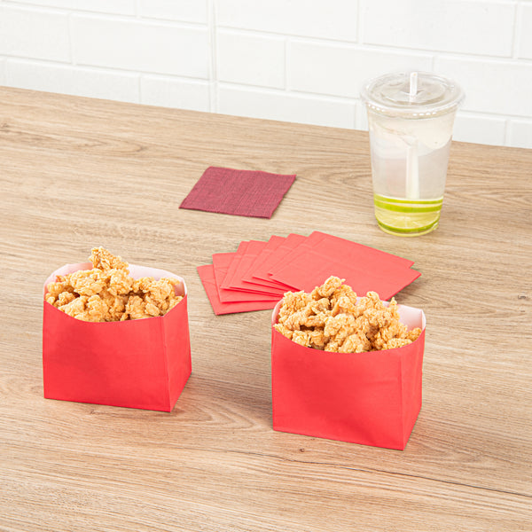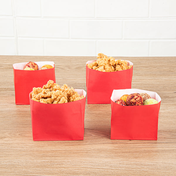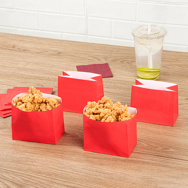 Enhance your snack presentation with upright packaging solutions. Bag Tek Red Paper Snack Bags feature a flat bottom design, ensuring they stand upright for an attractive display of your snacks. The high-quality paper construction supports hefty food items without tearing, ensuring durability and reliability during transport. Their recyclable nature supports eco-friendly disposal practices, appealing to environmentally conscious businesses. Elevate your foodservice operations with these versatile paper snack bags. Each order includes 100 Bag Tek Red Paper Snack Bags – Flat Bottom – 4.25" x 2.5" x 3.75".
