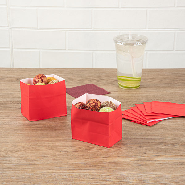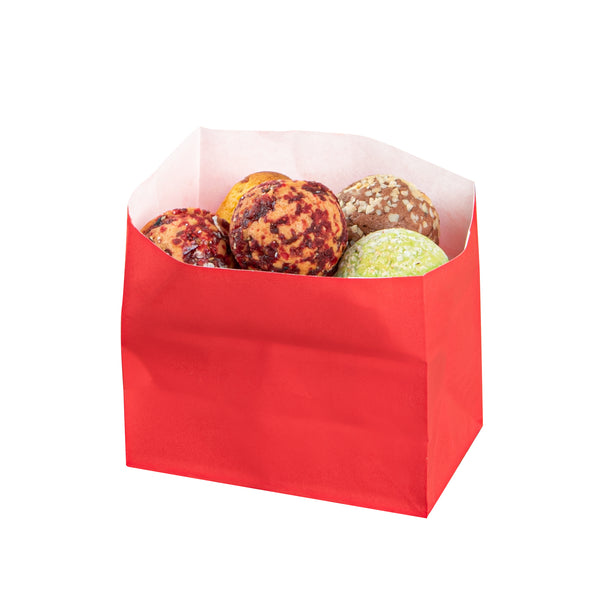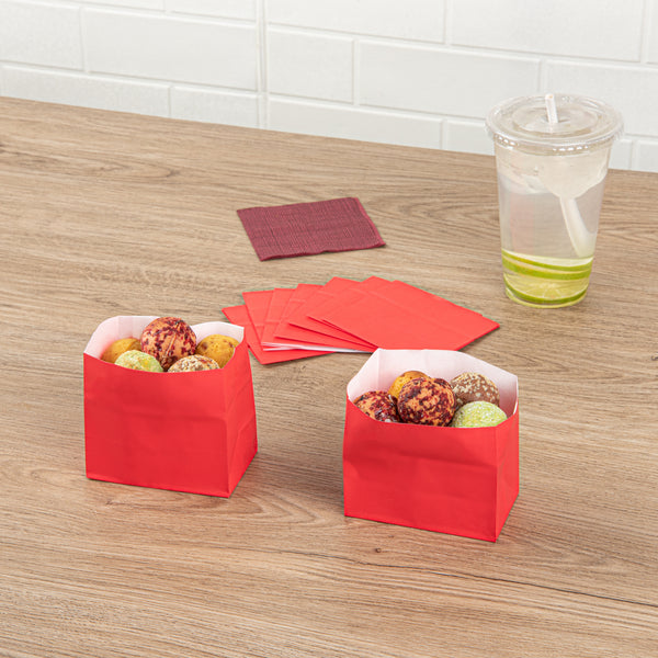 Effortlessly package snacks with Bag Tek Red Paper Concession Food Bags. The flat bottom design ensures these concession food bags stand upright, facilitating easy and efficient packaging for a variety of treats. Made from high-quality paper, these bags are strong enough to carry hefty food items without tearing, perfect for busy bakeries and concession stands. Designed to maintain the freshness of baked goods, these bags help ensure your cookies and pastries stay delicious. Their recyclable construction supports eco-friendly operations, catering to the needs of sustainable foodservice businesses. Enhance your snack service with these versatile popcorn bags. Each order includes 100 Bag Tek Red Paper Concession Food Bags.
