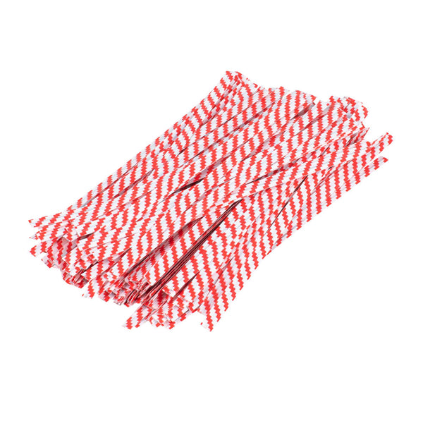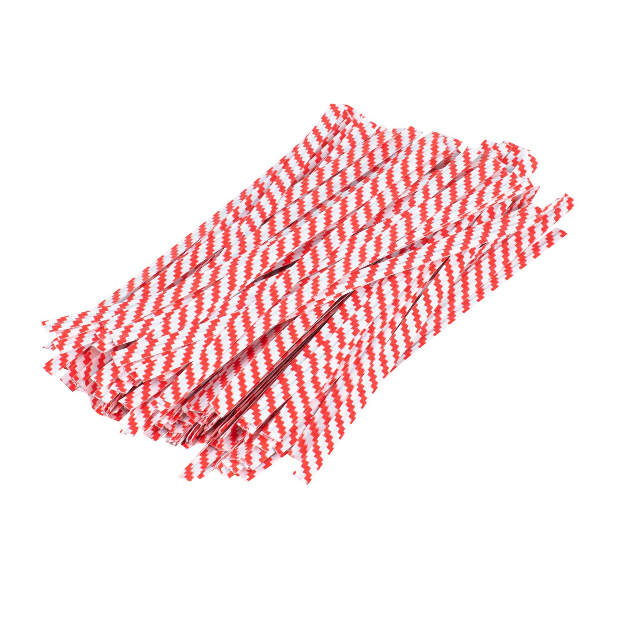 Ensure efficient food packaging with our Bag Tek Red Stripe Paper Twist Ties / Bag Ties. The twist ties are designed with a strong grip to keep your bakery and gift bags securely sealed. The distinctive red stripe and flush-cut ends aid quick identification in bustling kitchen environments, allowing for seamless and accurate bag sealing. Enhance your packaging process with these reliable laminated ties. Measuring 4 inches in length, these paper twist ties provide a reliable closure for sliced loaves and pastries, enhancing freshness and presentation in foodservice operations. Sold in a 500 count box.