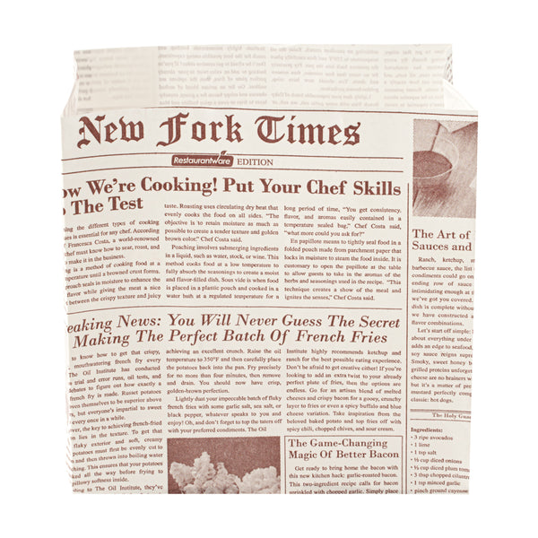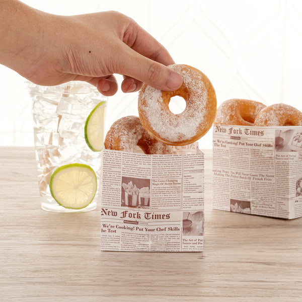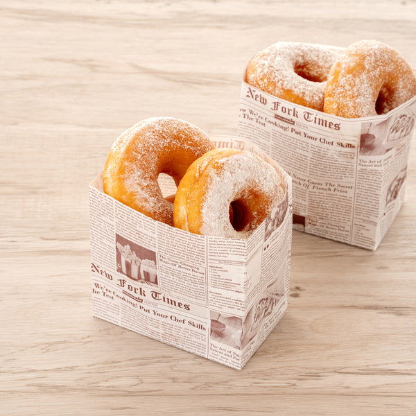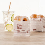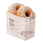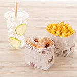 Maintain snack freshness with versatile newsprint paper snack bags. These bags are designed to ensure mess-free serving of pastries and other treats. These newsprint bags are crafted from high-quality paper, measuring 4 inches in length, 2.25 inches in width, and 3.75 inches in height, providing a compact size perfect for grab-and-go options at cafes and bakeries. Their food bags construction supports both cold and hot food items, making them an ideal choice for diverse menu offerings while ensuring a sleek, modern presentation. The flat-bottom design further enhances their utility by allowing them to stand upright, facilitating easy packaging and display. Elevate your foodservice operation with these efficient and stylish snack bags. Each order includes 100 Bag Tek Newsprint Paper Snack Bags.