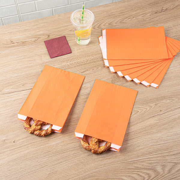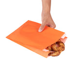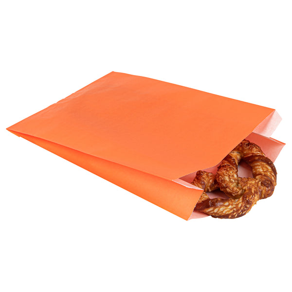 Make your snack service stand out with the Bag Tek Tangerine Orange Paper French Fry / Snack Bags. Each paper food bag features an open-pouch design for simple access, making them perfect for customers on the go. These snack bags are greaseproof, making them ideal for serving oily snacks like fries and onion rings. With an extended upper lip design, these treat bags allow easy separation, speeding up your serving process. The orange finish of these French fry bags elevates the look of your food presentation by adding a touch of fun. These goodie bags are disposable for a quick and easy cleanup. Each sandwich bag measures 7 inches in length by 3 inches in width by 11 inches in height. Sold in a 100 count box.