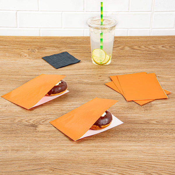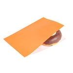 Maintain cleanliness with grease-free sandwich packaging. Greaseproof Orange Paper Sandwich Bags feature a greaseproof lining that prevents oils from seeping through, ensuring hands and surfaces remain spotless. Designed with a double open feature, these sandwich bags simplify the serving and carrying of sandwiches and chips, enhancing operational efficiency in busy kitchens. The vibrant tangerine orange color elevates presentation, making pastries and snacks more appealing to customers. Constructed from tear-resistant paper, these greaseproof sandwich bags guarantee secure transport of snack items, reducing the risk of spills during delivery. Measuring 6.25 inches by 4.75 inches, these compact bags are ideal for bakeries and cafes looking to package small pastries or sandwiches for takeout. Elevate your foodservice operation with reliable, eye-catching pastry bags. Each order includes 100 Greaseproof Orange Paper Sandwich Bags.