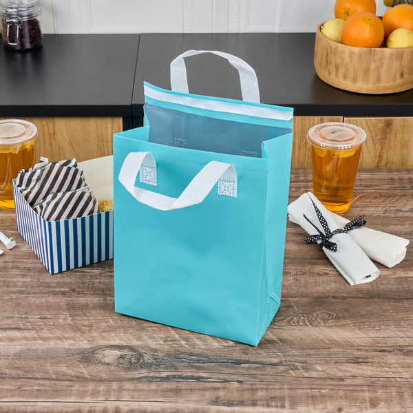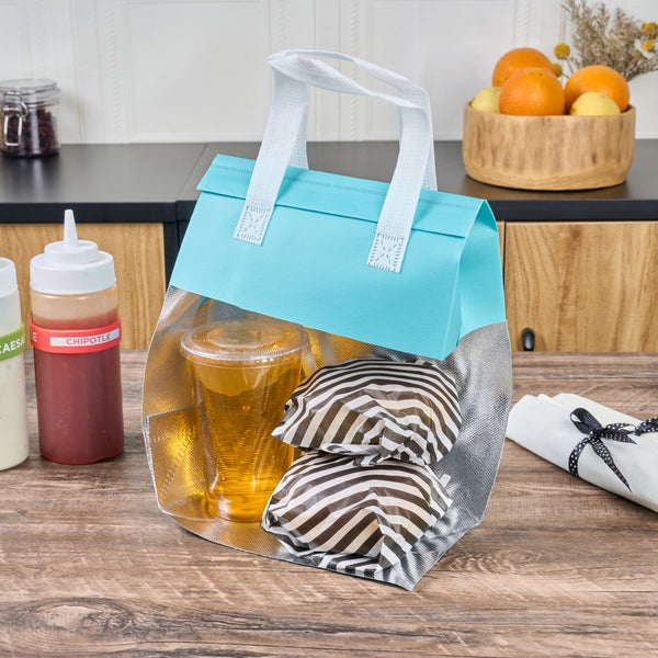 Ensure safe and temperature-controlled deliveries with ease. The Bag Tek Teal Nonwoven Thermal Delivery Bags boast advanced insulation technology that maintains ideal food temperatures for hours, ensuring dishes arrive as intended. These thermal delivery bags feature a spacious design, accommodating multiple foodservice items with a dimension of 8.25 inches in length, making them a versatile choice for various menu offerings. The tamper-evident design provides a clear indication if the bag has been opened, guaranteeing food safety during transport. Crafted from durable nonwoven material, these insulated cooler bags are lightweight and foldable, allowing for easy storage when not in use. Sturdy handles ensure stable and easy transport of goods, making these food delivery bags a reliable choice for catering events or takeout services. Enhance your delivery operations with these efficient bags. Each order includes 100 Bag Tek Teal Nonwoven Thermal Delivery Bags.