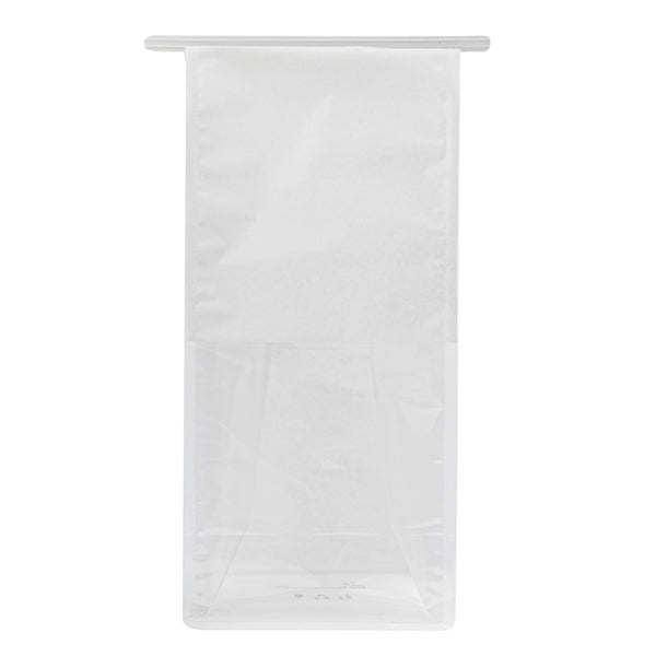 Showcase your prepackaged baked goods with our Bag Tek White Cotton Paper Tin Tie Bags. These tin tie paper bags with windows have a tin tie seal for secure packaging and locked-in freshness. The see-through window on these tin tie bags allows customers to conveniently peek at their goodies without needing to open them. These tin tie paper bags with windows are easy to open and close, allowing customers to reseal the bag for their convenience. Designed with a flat bottom, these small paper bags with windows stand upright on their own so your staff can quickly and easily prepackage treats. Featuring a PET lining, these tin tie bags with windows help avoid messes when packaging buttery cookies or yummy sandwiches. These resealable paper bags with windows have a classic white finish to complement the rest of your packaging supplies. Each paper tin tie bag measures 5 inches in length by 4 inches in width by 11.25 inches in height. Sold in a 100 count box.