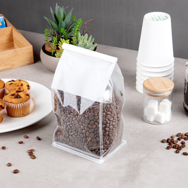 With a flat bottom design, these bags stand upright on their own to help streamline your packaging process. Perfect for showcasing your grab-and-go items on dessert tables or bakery displays.
