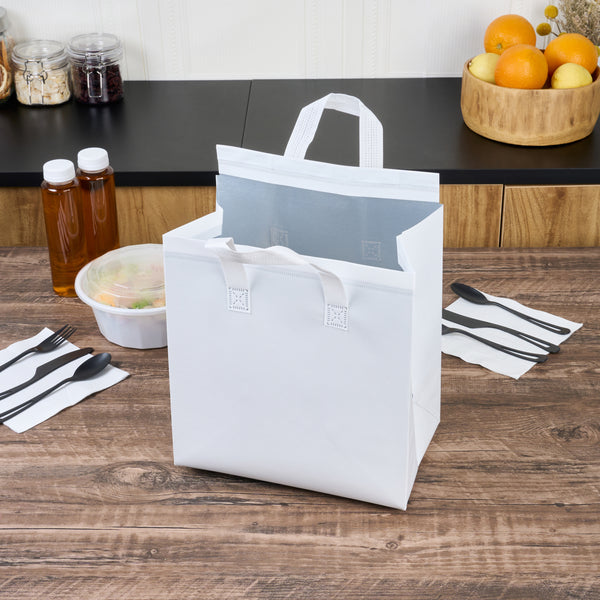 WHITE INSULATED TAKE OUT BAG - TAMPER-EVIDENT