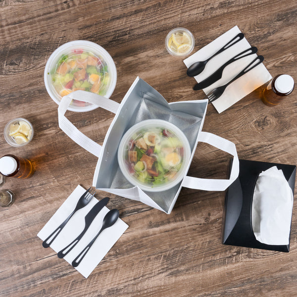 Ensure food safety and quality with tamper-evident thermal delivery bags. Bag Tek Insulation Thermal Delivery Bags feature an insulated design that keeps food hot or cold for extended periods, ensuring customers receive meals at the perfect temperature. These reusable insulated bags are crafted from nonwoven material, offering durability while supporting eco-friendly initiatives. With dimensions of 10.25 inches in length, 6.75 inches in width, and 11 inches in height, their spacious design accommodates a variety of food items, snacks, and beverages, making them ideal for diverse menu offerings. Sturdy handles provide easy and stable transport, reducing the risk of spills or mishaps during delivery. Perfect for frozen food delivery bags, these bags maintain the integrity of both hot and cold foods, enhancing customer satisfaction and trust. Invest in reliable foodservice solutions today. Each order includes 25 Bag Tek Insulation Thermal Delivery Bags.