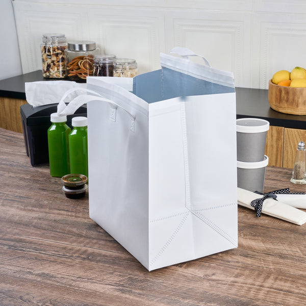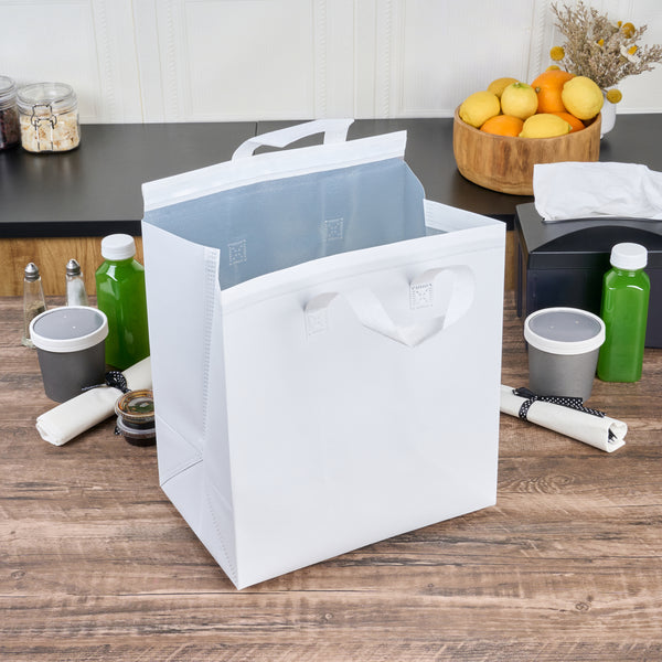 WHITE INSULATED TAKE OUT BAG - TAMPER-EVIDENT