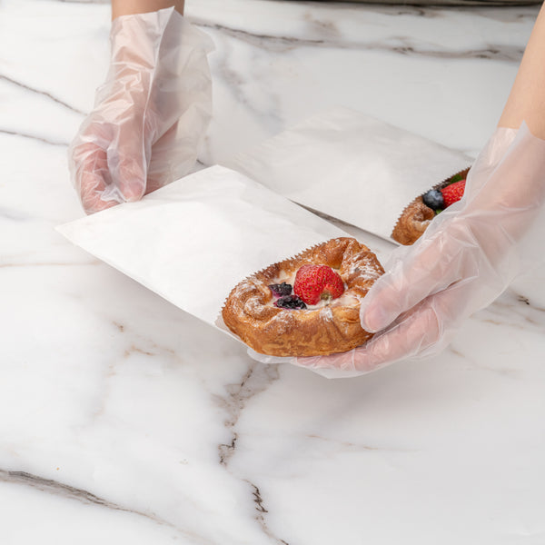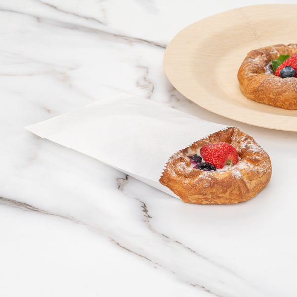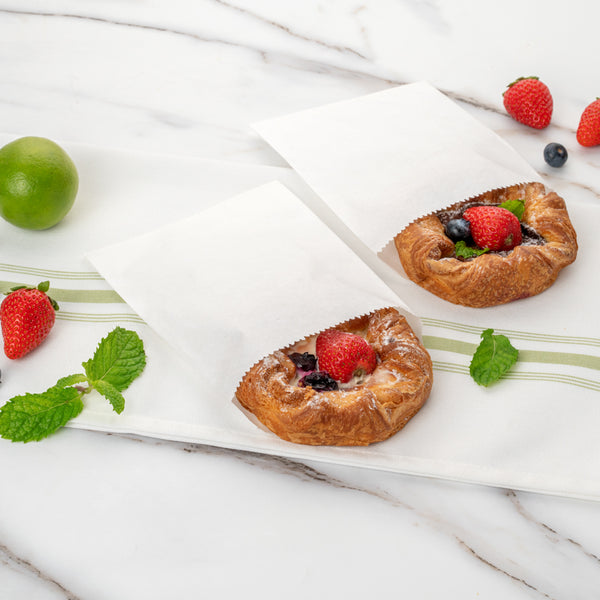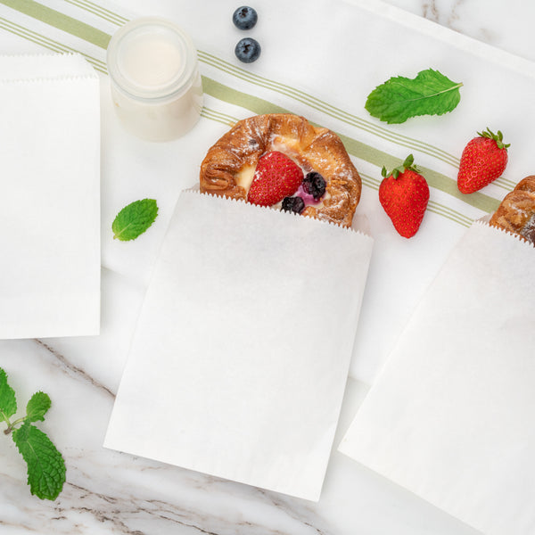 Give your snack packaging a new look with our Bag Tek White Paper Bags. With an open-pouch design, these white paper bags can be folded down so customers can seal in your delicious snacks. Made from greaseproof paper, these disposable paper bags keep unsightly oily stains from forming and staining clothes. Designed with a white finish, these sandwich bags give your packaging a crisp and clean appearance. These disposable bags are biodegradable and recyclable to reduce the carbon footprint at your bakery, deli, or restaurant. These deli paper bags measure 7 inches long by 5 inches wide. Sold in a 100 count box. This item will only degrade outside of the traditional solid waste stream.