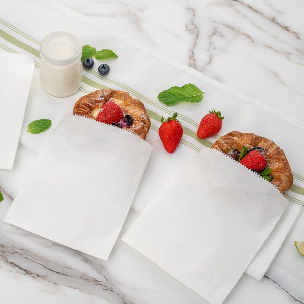 Give your snack packaging a new look with our Bag Tek Newsprint Paper Bags. With an open-pouch design, these white paper bags can be folded down so customers can seal in your delicious snacks. Made from greaseproof paper, these disposable paper bags keep unsightly oily stains from forming and staining clothes. Designed with a white finish, these sandwich bags give your packaging a crisp and clean appearance. These disposable bags are biodegradable and recyclable to reduce the carbon footprint at your bakery, deli, or restaurant. These deli paper bags measure 7 inches long by 5 inches wide. Sold in a 25 count box. This item will only degrade outside of the traditional solid waste stream.