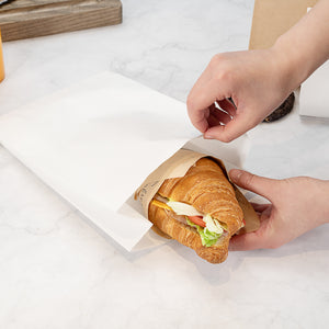 Allow guests to comfortably take mouthwatering appetizers and sides on the go using our Bag Tek White Paper French Fry / Snack Bags. Featuring an open-pouch design, these recyclable bags make it easy for customers to carry and enjoy fries while on the go. The white finish of these large to go bags brings a classic look to your snack presentations. To avoid oily messes and stains, these white snack bags have a greaseproof construction. These white snack bags are made from premium paper and are recyclable for sustainable and fast cleanup. These large to go bags measure 7 inches in length by 3 inches in width and 11 inches in height. Shipped in a 100 count box.