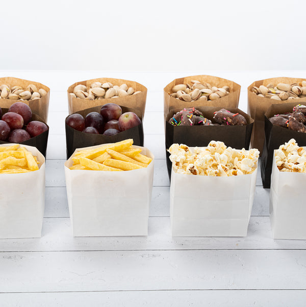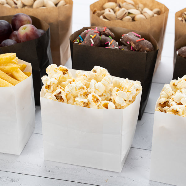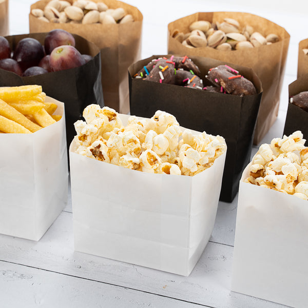 Ensure tidy and efficient service with these compact paper bags. The Bag Tek Small Paper Bag maintains cleanliness while serving snacks, making it a reliable choice for cookies, nuts, or fresh pastries. Measuring 4 inches in length, this small paper bag is perfect for portion control, reducing waste by fitting just the right amount of treats. Its sturdy construction helps keep items fresh, while the flat bottom provides an upright display for an attractive presentation. Simplify cleanup with this disposable snack bag, which is ideal for cafés, bakeries, and concession stands. Each order includes 100 Bag Tek Small Paper Bags.
