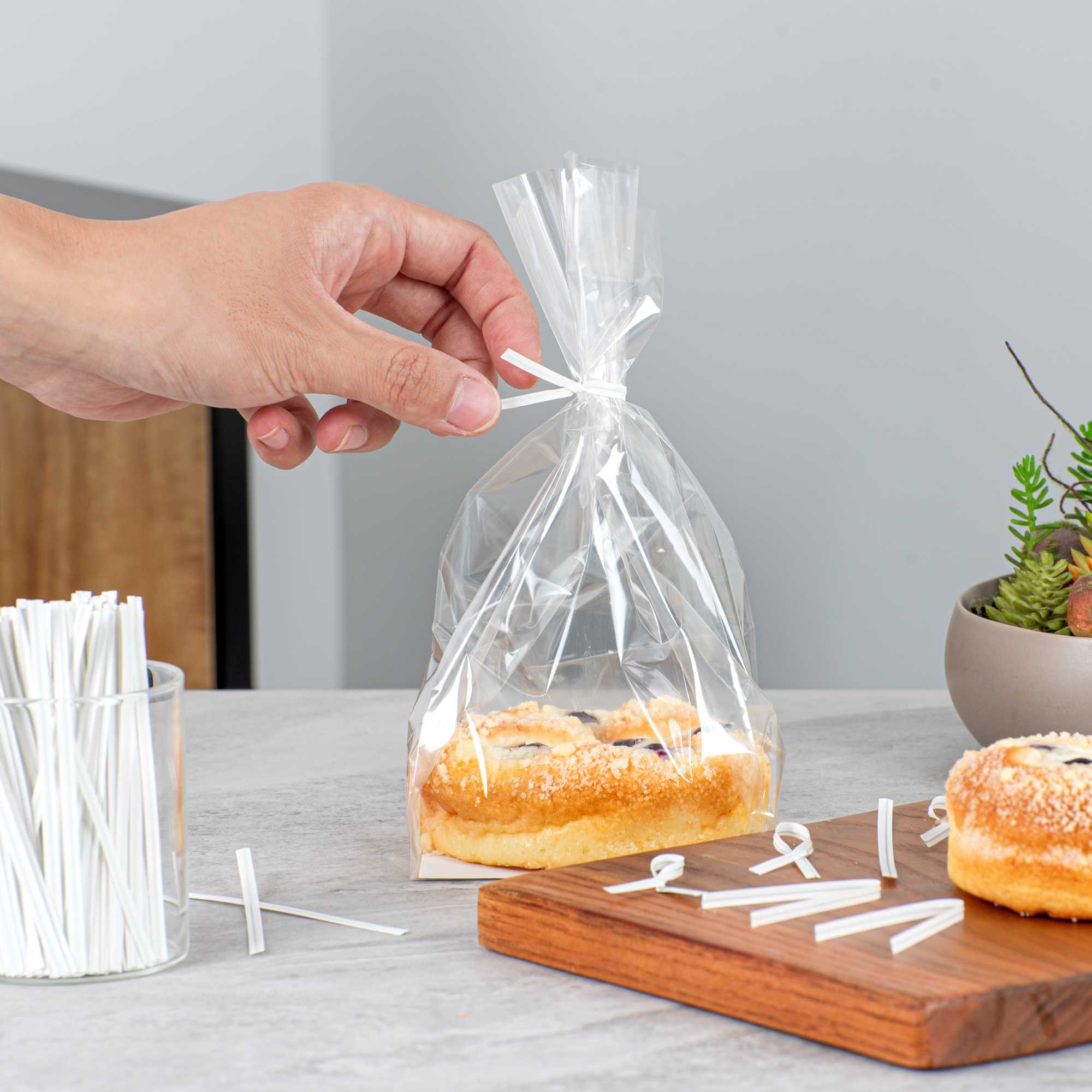 Ensure your baked goods remain fresh with our Bag Tek White Paper Twist Ties / Bag Ties. The twist ties are crafted from white paper, offering a flush-cut design, making them ideal bag twist ties for various foodservice needs. Featuring a robust iron wire core, these food packaging ties provide reliable sealing, which is essential for maintaining the freshness of your bakery items. The crisp white color of these ties easily coordinates with any bakery packaging, enhancing the presentation of your products. Utilize these versatile ties for sealing candy, bread, gifts, and bakery bags, or even for decorative purposes in your establishment. The 4-inch length of these bread twist ties is perfect for securely closing breads and pastries, ensuring they stay fresh longer. Sold in a 5,000 count box.