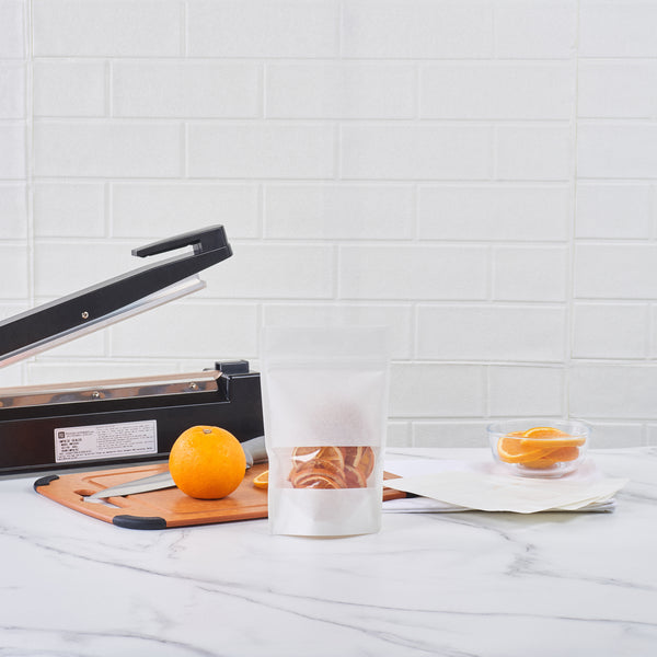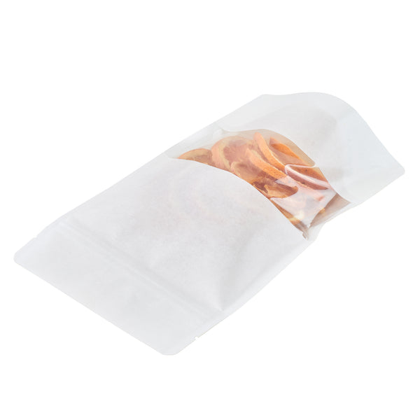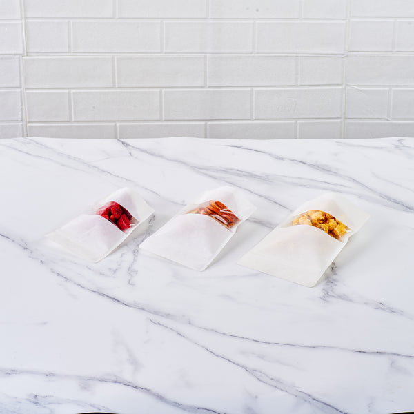 Elegantly display sweets on your shelf with our Bag Tek Rectangle White Plastic Medium Window Bags. These candy goodie bags are heat sealable to prevent tampering at your deli, bakery, or catering service. Featuring a transparent window, these heat sealable bags draw customers' eyes to your multi-colored gummies. With a white finish, these food grade plastic bags give your snack presentations a sophisticated and classic look. Constructed from high-quality plastic, these candy goodie bags are recyclable to shorten your cleaning process after service hours. These treat bags are tear-resistant to keep food safe from dust. Great for avoiding messy spills, seal these deli bags with our heat sealers (SKU: RWT0243 or RWT0244) to keep confectionery expertly contained. Measuring 8 inches long by 5 inches wide by 1.75 inches in height, these plastic food bags are sold in a 100 count box.