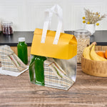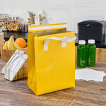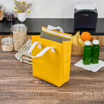 Ensure food arrives hot and tamper-free with confidence. Bag Tek Insulated Thermal Delivery Bags feature an insulated design that keeps foods hot or cold for longer periods, ensuring optimal food quality during delivery. These insulated meal delivery bags boast a spacious interior measuring 8.25 inches long by 4.25 inches wide by 10.75 inches high, fitting multiple meals effortlessly for versatile takeout solutions. With sturdy handles, these hot cold food delivery bags provide easy and stable carrying, even when handling large orders. Crafted from durable nonwoven material, these bags are lightweight and foldable, saving valuable storage space in busy kitchens. Their bright yellow color enhances brand visibility, making your deliveries stand out. Ideal for restaurants and catering services, these thermal delivery bags offer a reliable and efficient way to maintain food quality and safety. Each order includes 100 Bag Tek Insulated Thermal Delivery Bags.