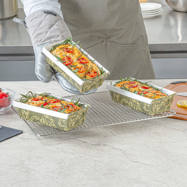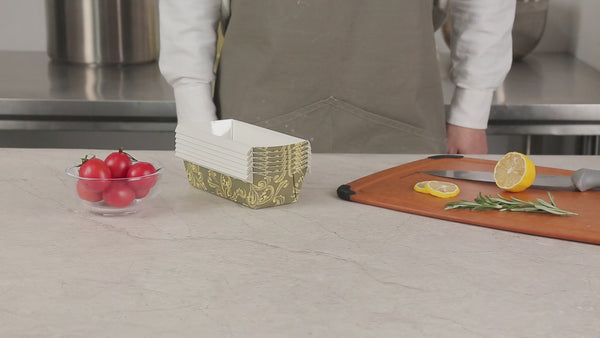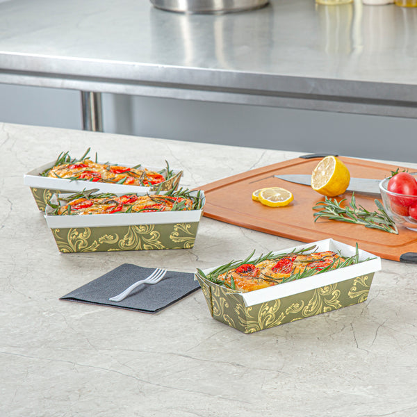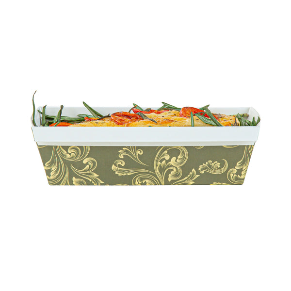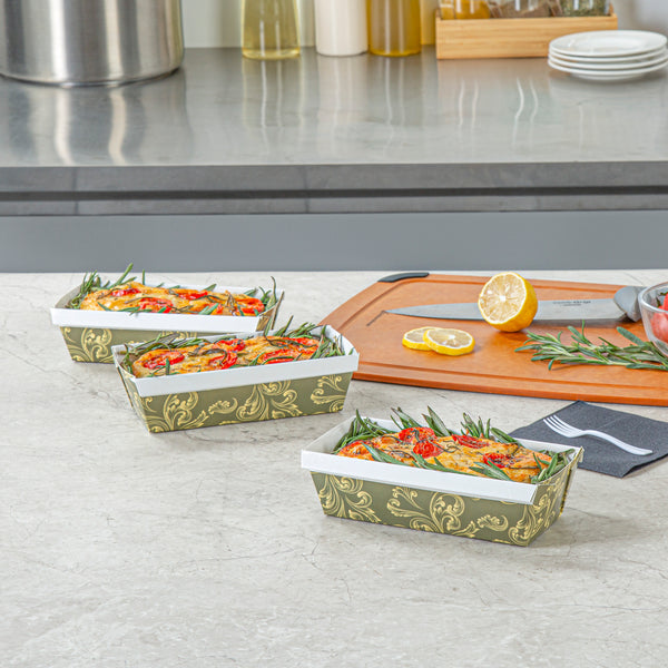 13 OZ DARK GREEN VINTAGE FLORAL PAPER BAKING LOAF PAN - GREASEPROOF