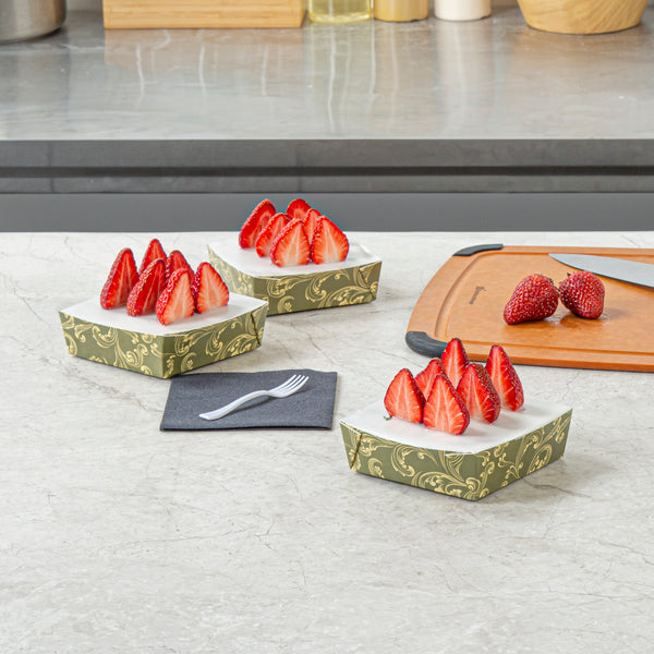 8 OZ DARK GREEN VINTAGE FLORAL PAPER BAKING TRAY - GREASEPROOF