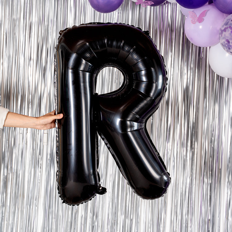 BLACK MYLAR LETTER R BALLOON