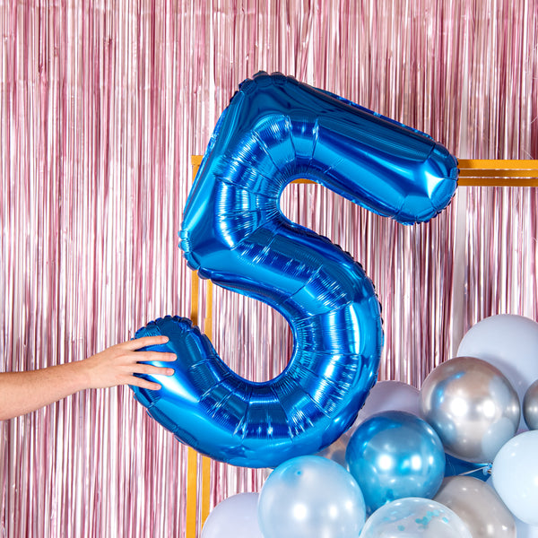 BLUE MYLAR NUMBER 5 BALLOON