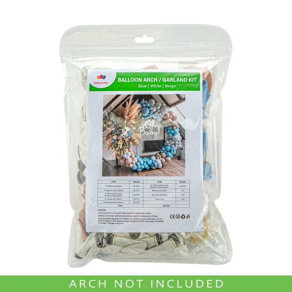 BLUE, WHITE AND BEIGE BALLOON ARCH / GARLAND KIT - 163 PIECES
