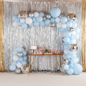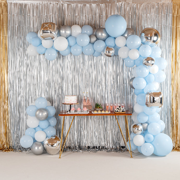 BLUE, WHITE AND SILVER BALLOON ARCH / GARLAND KIT - 142 PIECES