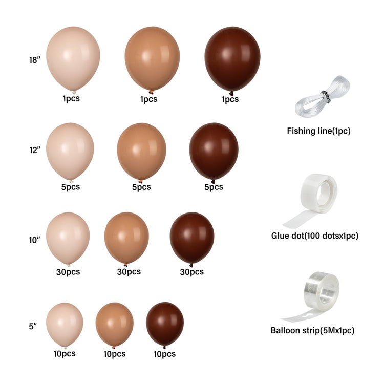 BROWN, BEIGE AND WHITE BALLOON ARCH / GARLAND KIT - 141 PIECES