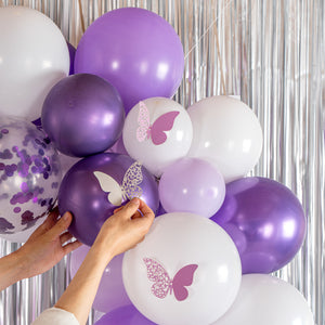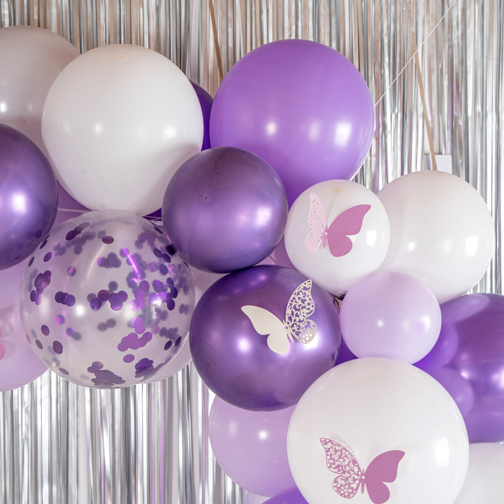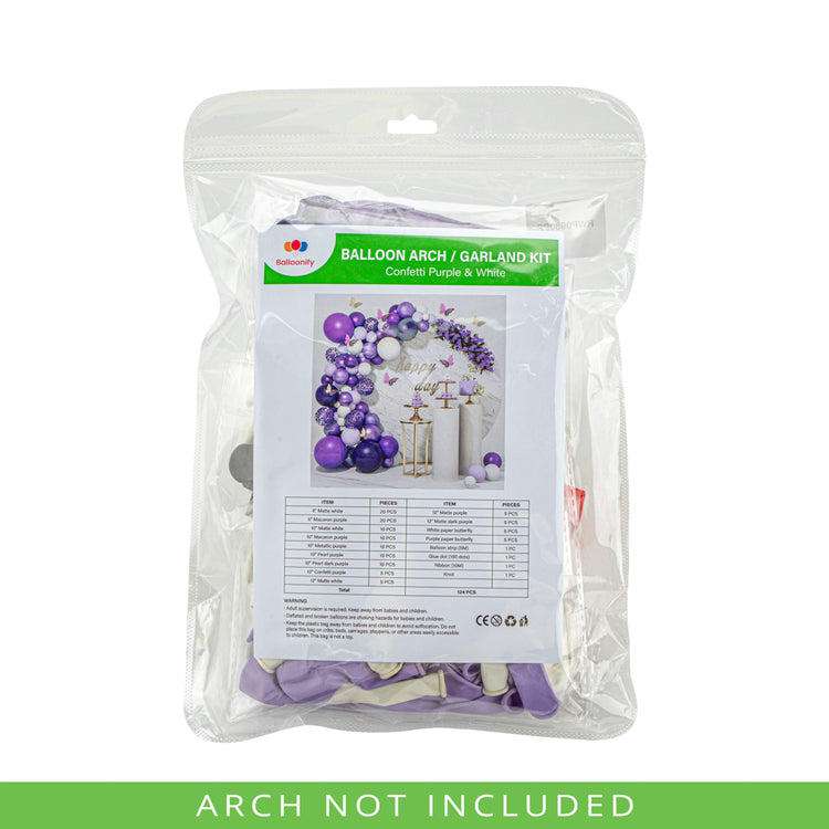 CONFETTI PURPLE AND WHITE BALLOON ARCH / GARLAND KIT - 124 PIECES