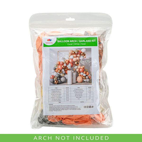 CORAL, WHITE AND GOLD BALLOON ARCH / GARLAND KIT - 129 PIECES