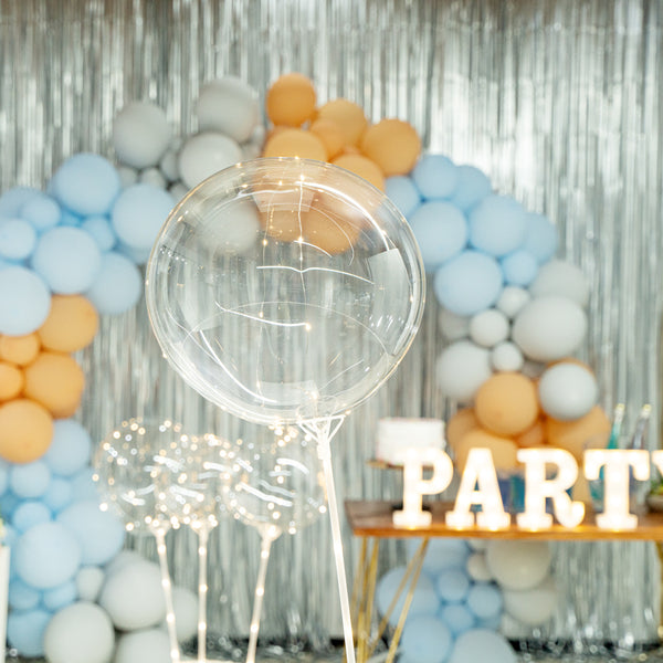 The 9.8-foot LED string light of these transparent balloons with lights give a sparkling look to your balloons and the entire place. Lasts up to 48 hours when used continuously.