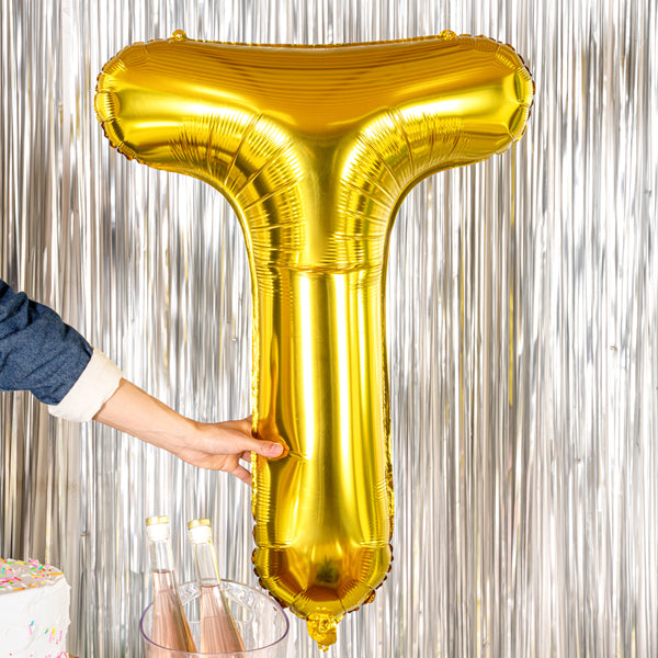 GOLD MYLAR LETTER T BALLOON