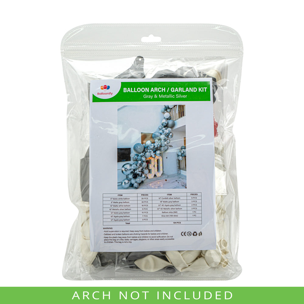 GRAY AND METALLIC SILVER BALLOON ARCH / GARLAND KIT - 104 PIECES