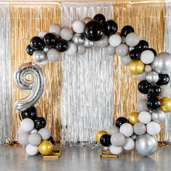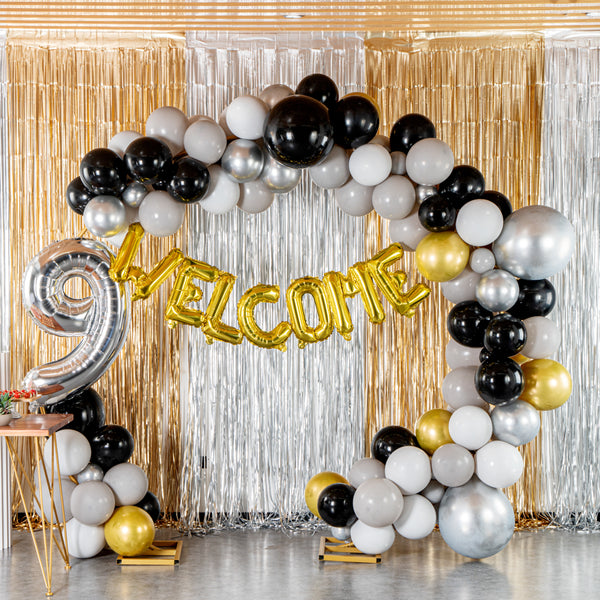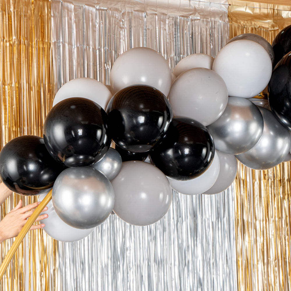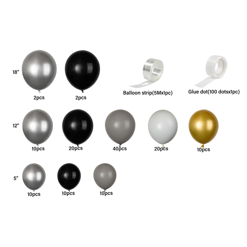 GRAY, BLACK AND GOLD BALLOON ARCH / GARLAND KIT - 136 PIECES