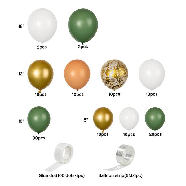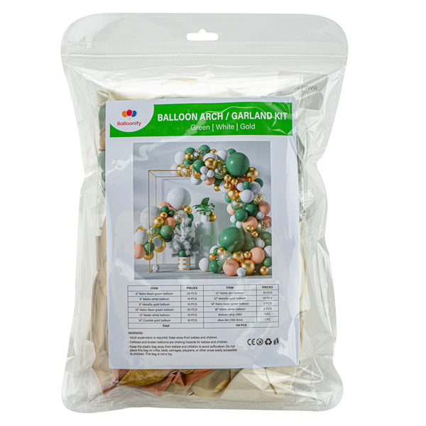 GREEN, WHITE AND GOLD BALLOON ARCH / GARLAND KIT - 116 PIECES