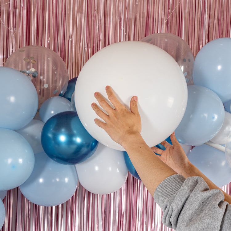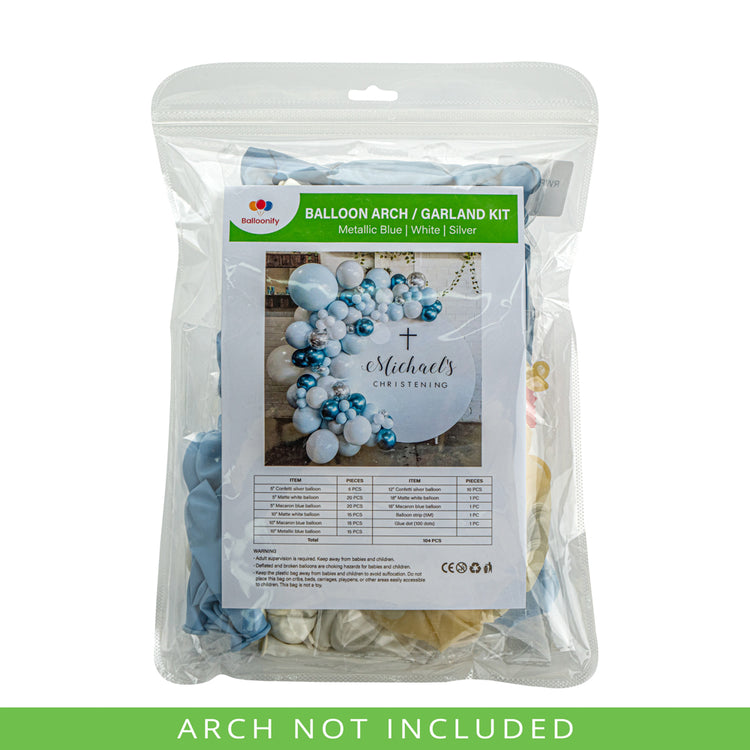 METALLIC BLUE, WHITE & SILVER BALLOON ARCH / GARLAND KIT - 104 PIECES