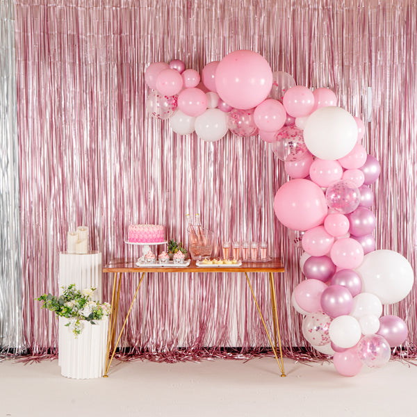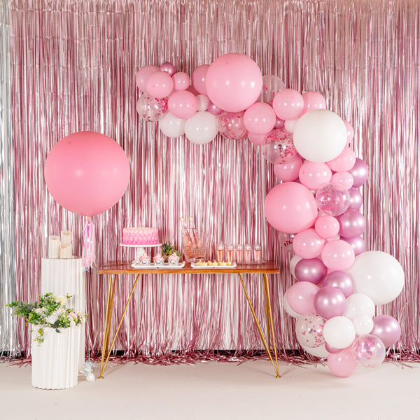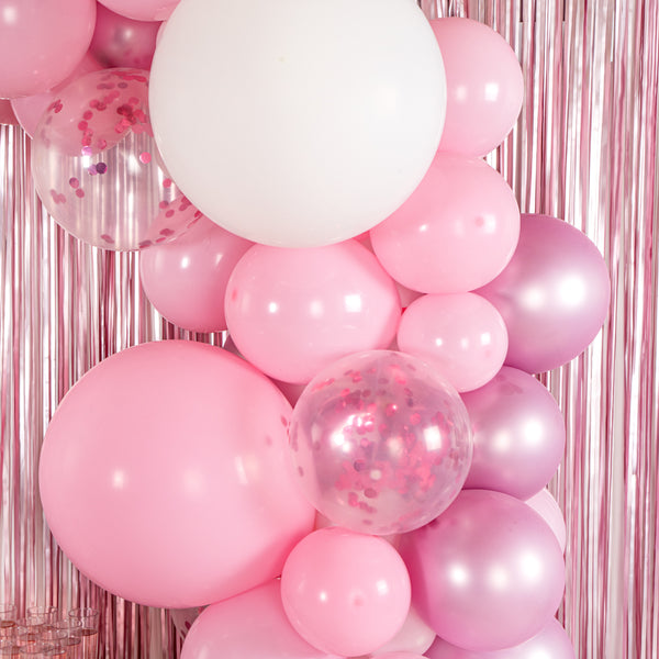 Make decorating fun and exciting with our Balloonify White Balloon Arch / Garland Kit. Made from premium latex, these balloons for arches are durable and don't leave discolored patches when inflated. This balloon arch set includes 104 balloons, 1 balloon strip, and 1 glue dot strip for a quick and simple setup process. With 42 macaron pink balloons, 32 matte white balloons, 20 metallic pink balloons, and 10 confetti pink balloons, this balloon garland arch allows you to create unique decors for your party halls. This birthday balloon arch has confetti balloons that add a sparkly tone to your backdrop. The double-holed balloon strip of this DIY balloon garland kit is 16.4 feet in length and can secure 99 balloons together to create a thickly covered balloon garland. With 100 moistureproof nano glue dots, this balloon garland set allows you to attach small clusters of balloons together effortlessly. In this set, you'll receive 5-inch balloons (40 pieces), 10-inch balloons (30 pieces), 12-inch balloons (30 pieces), 18-inch balloons (4 pieces), 16.4-foot long balloon strip (1 piece), and 1 glue dot strip with 100 dots. All the balloons are shipped flat and deflated. Sold in a box with 42 macaron pink balloons, 32 matte white balloons, 20 metallic pink balloons, 10 confetti pink balloons, 1 balloon strip, and 1 glue dot. Arch not included. Electric air balloon pump (SKU: RWP1061) is available and sold separately.
