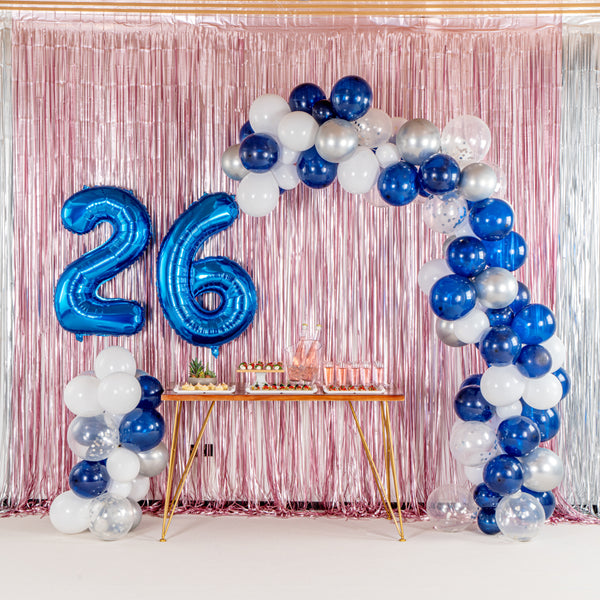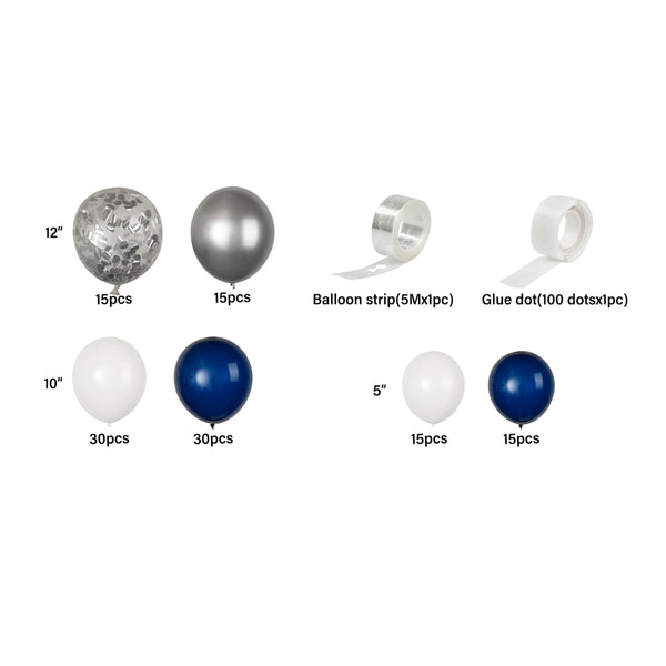 NAVY, WHITE AND SILVER BALLOON ARCH / GARLAND KIT - 122 PIECES