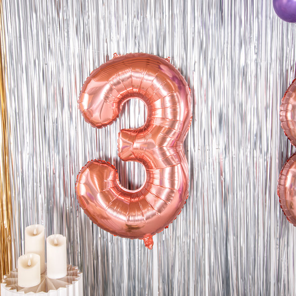 ROSE GOLD MYLAR NUMBER 3 BALLOON