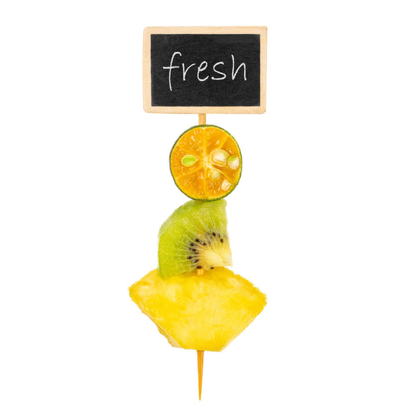 Add a touch of elegance to your fare with our Bamboo Framed Chalkboard Picks. Crafted from premium bamboo, these recyclable skewers are designed to hold a variety of appetizers or desserts without breaking or splintering. These biodegradable bamboo picks feature a charming bamboo frame that adds a touch of rustic sophistication to your presentations. The chalkboard surface of these commercially compostable bamboo picks allows easy customization, making it ideal for labeling food items and drinks or adding personalized messages. With their sharp, pointed ends, these chalkboard framed picks effortlessly pierce through food items, providing a secure hold. These picks' smooth, natural finish ensures a pleasant dining experience without unwanted splinters. Made with quality and durability in mind, these bamboo fruit picks are designed to withstand the demands of both indoor and outdoor events. These disposable food picks are perfect for easy and fast cleanup after use. Each chalkboard pick measures 6 inches long, adding a unique flair to your culinary creations. Shipped in a 1,000 count box. This item will only degrade outside of the traditional solid waste stream.