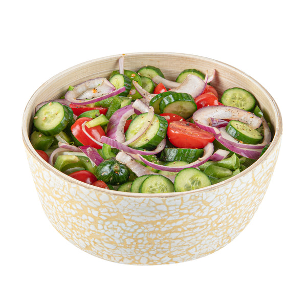 Prevent messes with the greaseproof design of our Bambuddha Bamboo Salad Bowl. This bamboo salad bowl measures 7.87 inches by 3.94 inches and is perfect for serving an array of oily and saucy dishes without causing any mess. Its bamboo construction makes it ideal for hot or cold dishes, providing versatility as a bamboo serving bowl for all your culinary creations. The freezer-safe convenience allows you to store leftovers efficiently, making this bamboo food bowl a functional choice in fast-paced kitchens. Additionally, its hot food-friendly feature ensures fresh meals are served at optimal temperatures, enhancing the dining experience. Elevate your food presentation and sustainability efforts with this biodegradable and commercially compostable option. Invest in reliability and sustainability with our eco-friendly salad bowl. Sold in a 1 count box.