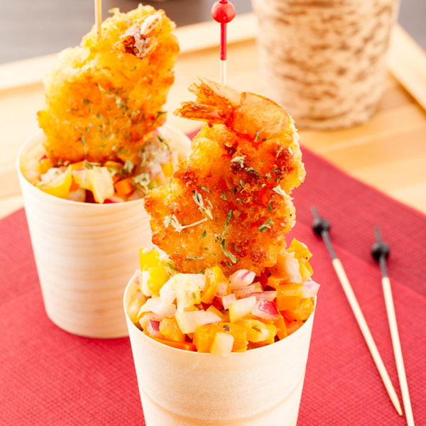 Transport your guests to an elegant picnic in the woods with 3-ounce Bambuddha Round Natural Shaved Pinewood Medium Cups with Natural Bamboo Mini Forks. These disposable cups are made from organic pine wood and can contain up to 3 ounces, making them fantastic for serving smaller portions at catered events and buffets. As a set, these snack cups come with bamboo forks that are designed with two long tines and do not break or cause any splinters while using. The durable construction of these pinewood cups makes them perfect for serving various hot or cold food items. These appetizer cups and cocktail forks are biodegradable and commercially compostable to provide an environmentally-friendly serving solution to your catering needs. With a natural wooden finish, these round cups for food and single-use tasting forks provide an organic rustic look to your tablescape. These serving cups measure 2.5 inches in diameter by 2.5 inches in height and have a capacity of 3 ounces, while the tasting forks measure 3.5 inches in length. Each order includes 200 cups and 200 forks. These items will only degrade outside of the traditional solid waste stream.