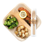 200 RECTANGLE 8" WOOD PLATES AND 200 BAMBOO FLATWARE SETS