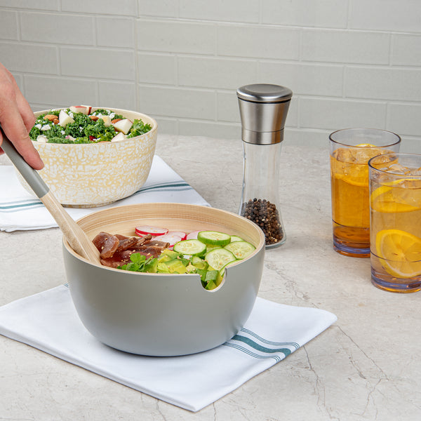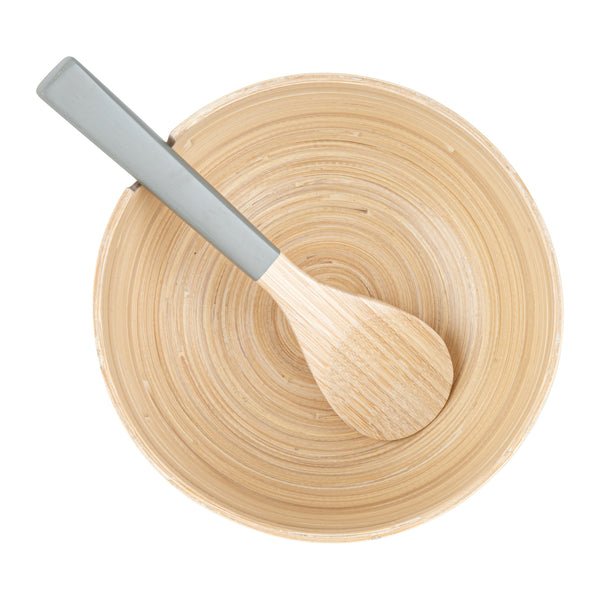 25 OZ ROUND GRAY SPUN BAMBOO SERVING BOWL - WITH SERVING SPOON