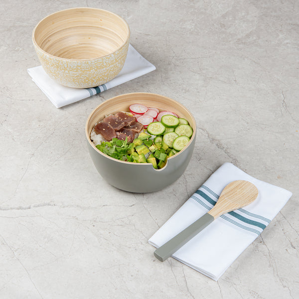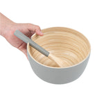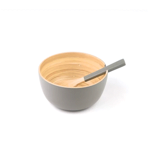 25 OZ ROUND GRAY SPUN BAMBOO SERVING BOWL - WITH SERVING SPOON