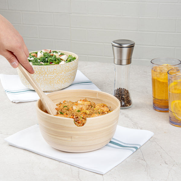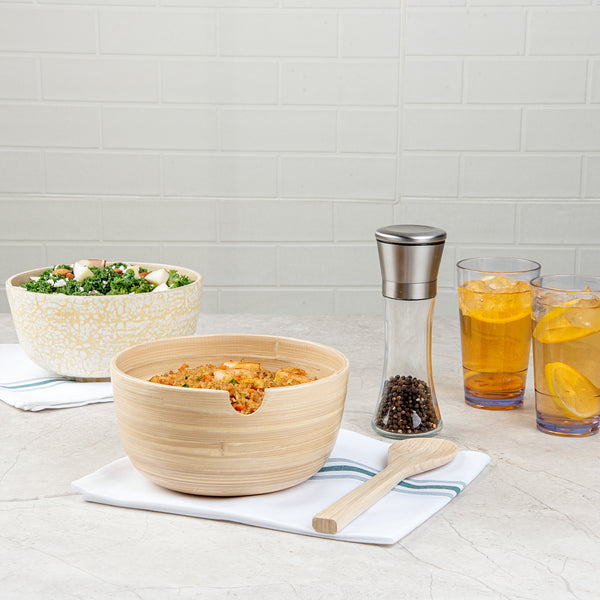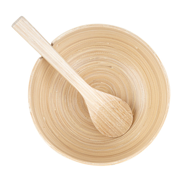 25 OZ ROUND NATURAL SPUN BAMBOO SERVING BOWL - WITH SERVING SPOON