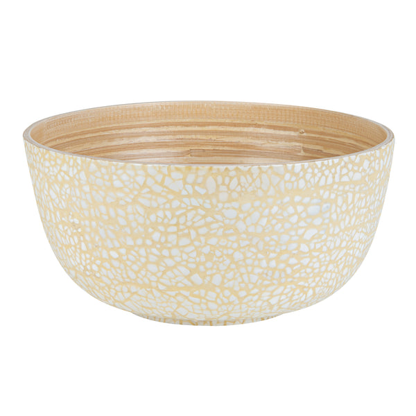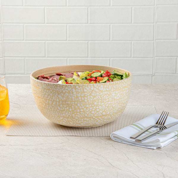 30 OZ ROUND BEIGE SPUN BAMBOO LARGE EGGSHELL SALAD BOWL